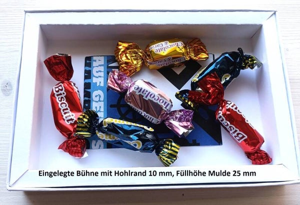 Die Deckel ist von innen weiß, das Unterteil ist komplett weiß und enthält keinen Einsatz. Du kannst aktuell aus drei Einsätzen auswählen.